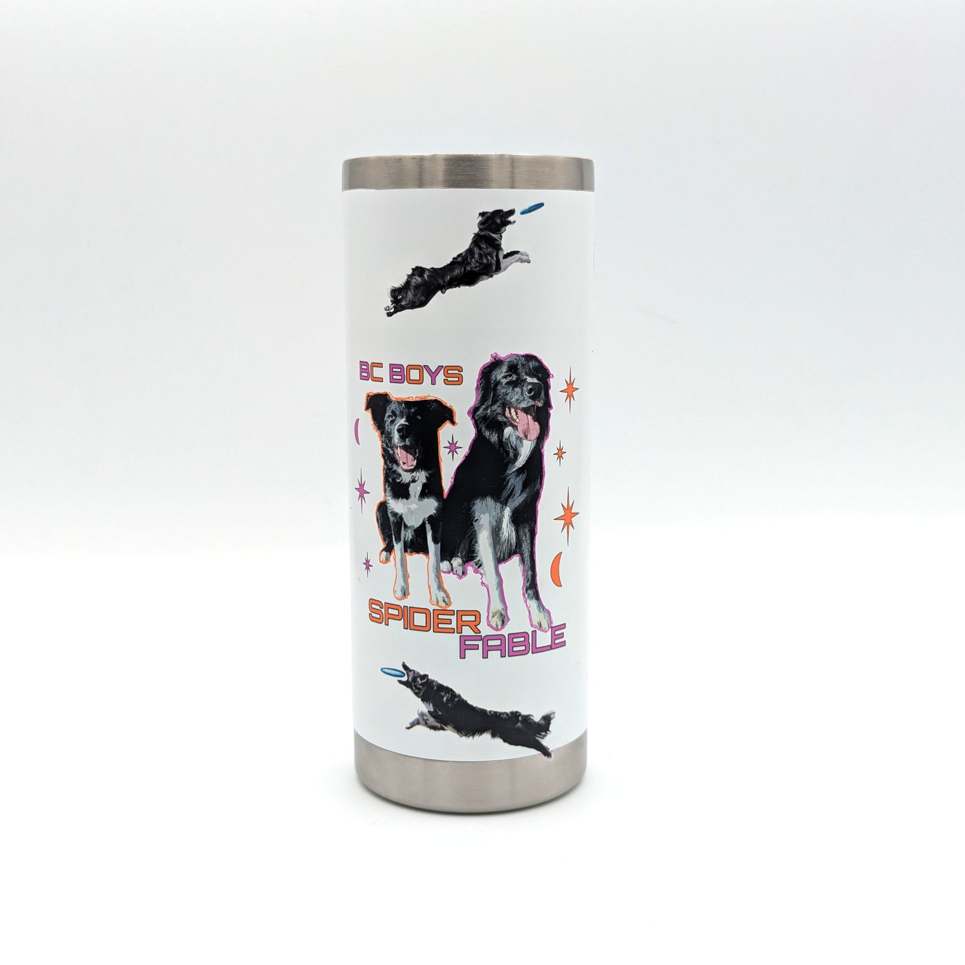 Stainless steel powder coated tumbler with plastic top. Your photo(s) is UV printed right on the tumbler. Hand wash only.